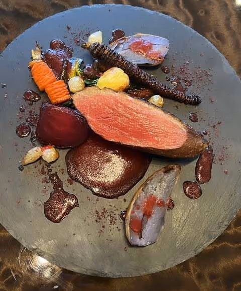 - Moroccan Spiced Duck Breast - Crisy Skin, Roasted Beetroot, Sauteed Spinach, Pearled Onion,